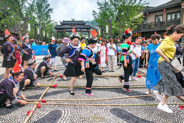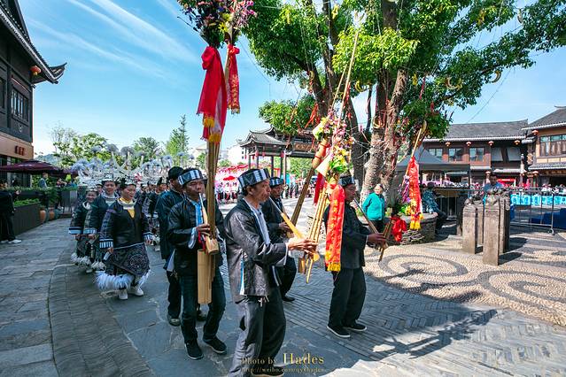 平日里的小镇安逸静谧,但到了有节庆活动的日子里,便成了欢乐的海洋。小镇上经常有各色节庆活动,这时周围居民都会身着民族服饰,汇集在尤公广场舞蹈欢歌。