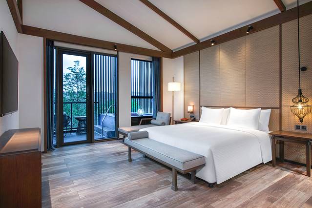 万达锦华温泉酒店室外环境青葱优美,既有清透唯美的大泳池,又隐藏了很多清幽静谧的温泉汤池。在这里度假,不仅可以远眺小镇风景,更可以戏水泡汤,无论酷夏寒冬,都能悠然快活。