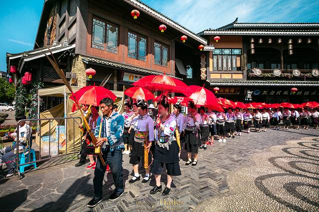 刚到小镇入口,就感受到了当地人民的热情和浓浓的民族风情。用心妆点的节日会场,宏大的迎宾队伍,乘着萧音笛语,喝上一口迎宾酒,热辣的气氛在这一刻便涌上心头!