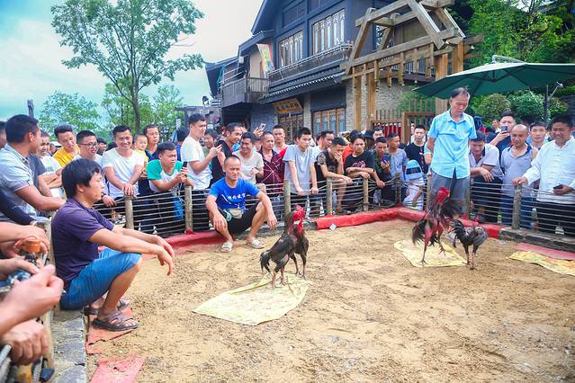 来丹寨之前,便已听闻这里有斗牛、斗鸡、斗鸟,三大斗艺场馆。当地的斗鸡可以说是一绝,不仅鸡肉紧实鲜美,其凶悍好斗的性格更是让斗鸡成为丹寨的一道特色风情。
