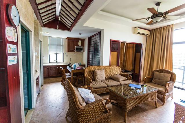 住和吃那就看自己了,住大东海和三亚湾一个家庭套房260左右,吃很多地方,第一市场比较丰富。