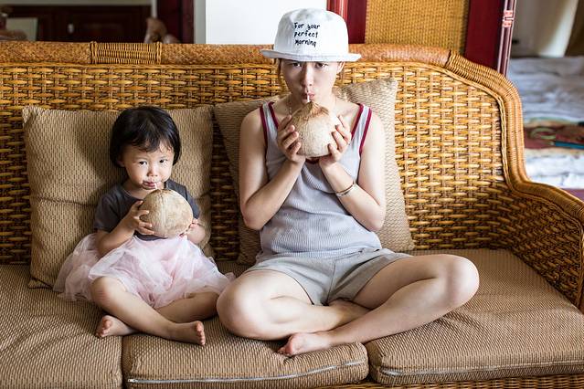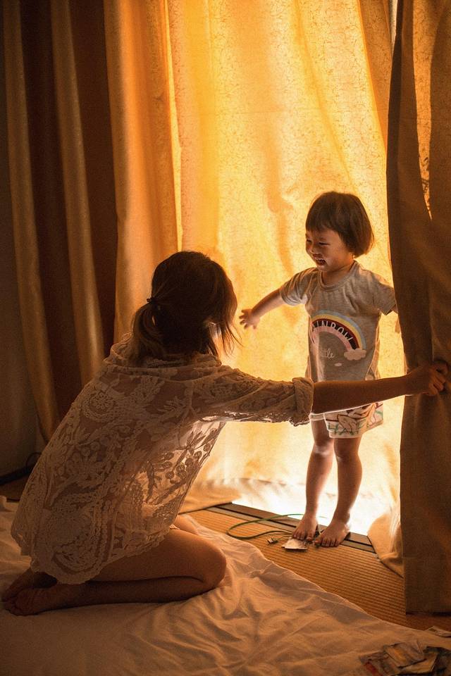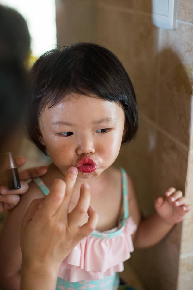 这个房间还有个好处,阳光好,有一个榻榻米房间很适合拍照,全部自然光。两个人玩的嗨皮极了,化化妆,擦擦防晒霜,准备又出去浪了。此处有个问题,是不是每个小姑凉都喜欢擦妈咪的口红💄。
