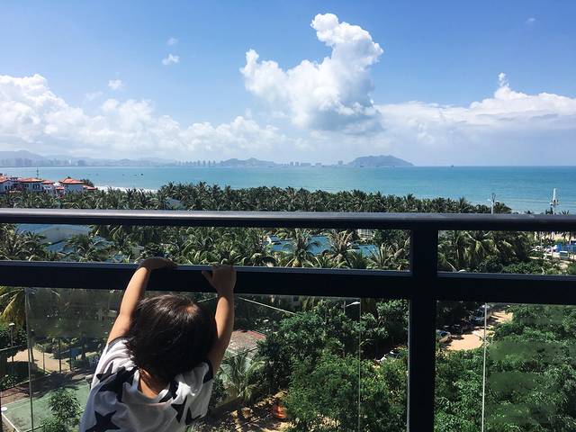 第二天,我们决定换个人少的地方,订了一家三亚湾离西岛近一点的旅巢海景公寓酒店。本来打算去蜈支洲岛,说那个岛最美了,但想想离得远点,而且小宝太小水上也玩不了什么项目。所以就就近了,大家开心就行了太阳