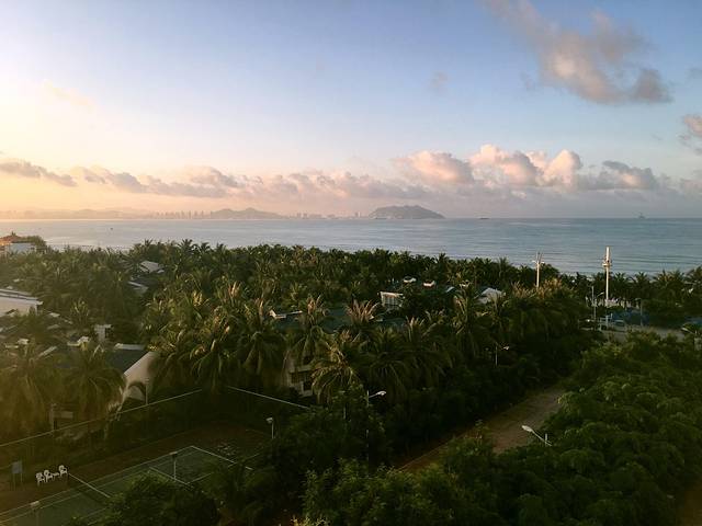 房间的阳台,视野很开阔,望出去都是椰树,蓝蓝的大海。