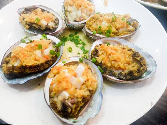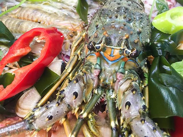 海胆蒸蛋,蒜蓉鲍鱼,椒盐爬爬虾,龙虾,一顿逛吃,可惜小宝很多不会吃白眼小蜂