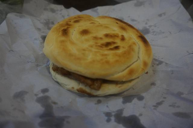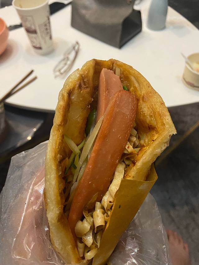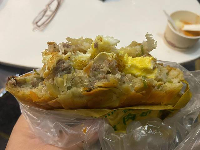打包到住处后才吃,憋了很久的我一口咬下去!肥而不腻,包菜碎与牛肉形成完美搭配,外层被烤的金黄酥脆的饼皮在外表上就极其加分,内里的肉馅多到让我等南方人哭泣,鸡蛋的加入反而感觉成了一个败笔,阻拦了牛肉的香气进入我的胃里,如果有下次我绝对不加蛋!