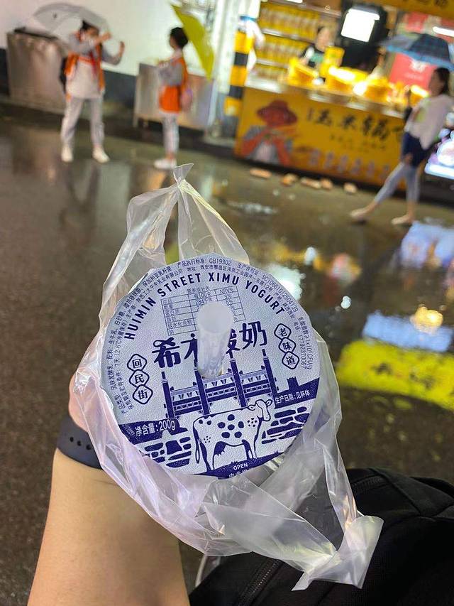 第四站定位稍微有点问题不是这个位置,不过回民街、洒金桥随处可见希木酸奶,尝了一个原味的,感觉也是名气大于实力,口味很普通的酸奶而且贵,普通到其实随便一家便利店里买一瓶光明LOOK都能吊打的那种普通。