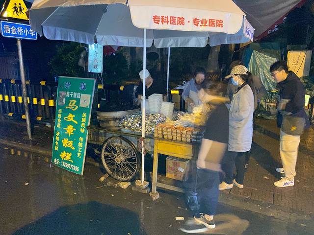 胖子甑糕全名叫马文章甑糕,实际上不是实体店而是一个流动摊点,其名气与口碑各大APP竞相推荐,去哪儿网为一个流动摊点设置一个地名就是证明,同时我五点半出门专程买这个也是证明,具体其位置在洒金桥进去50米左右杨天玉腊牛羊肉馆旁。当我顶着小雨到达时已经有不少人在购买了。