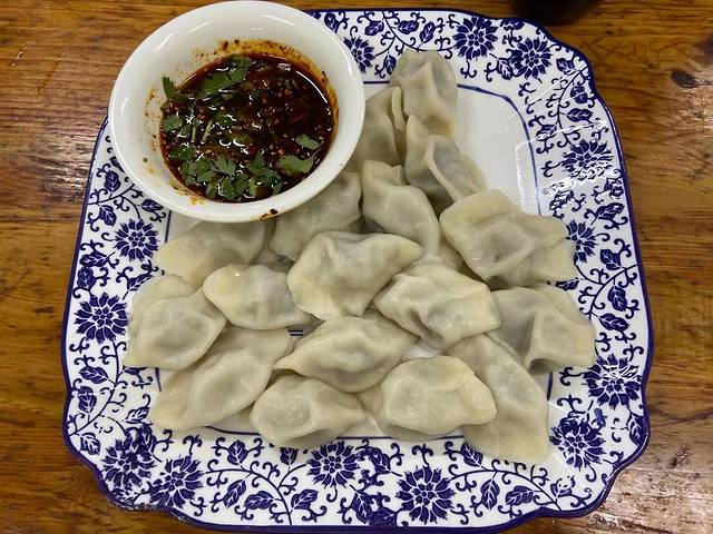 这家店在去哪儿网找不出地名来,也不是网红店,甚至我们进去的时候里面都没人,但是就是好吃,也是我们唯一自己去找的店,没有经人推荐,饺子直接现场制作,煮出来一口咬下去Q弹爽滑,好吃,最后这一盘我全部吃完了