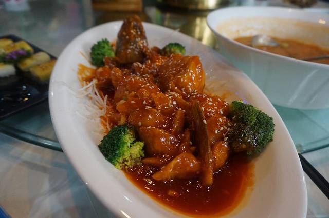 何乖乖也许前一天晚上和上午心态爆炸了很多次,再也压抑不住的吐槽起来,不过也确实,我们两人在湖南葫芦鸡吃的多就没点,先说最大的期待松鼠鱼,给7分是考虑了一下做法实在是没问题,刀工什么的也不错,但是确实是这菜没法下饭,按理说是糖醋口,结果整成了一个甜口。