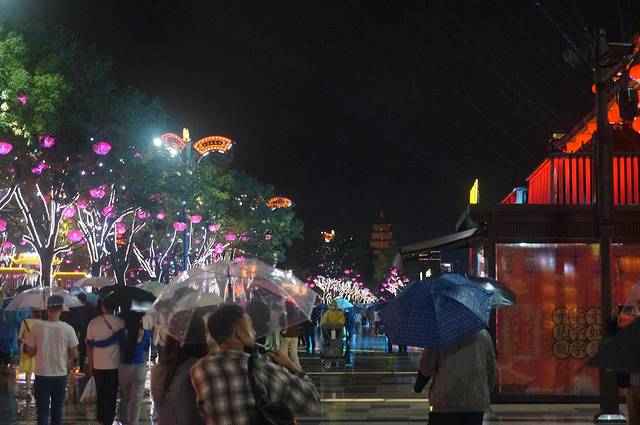 出了大唐芙蓉园大约11路车10分钟左右走到不夜城,此时突出其来的大雨彻底打乱了我和乖乖两人游览的心情,我也是真没想到,出门前我反复看了好几天的天气预报都显示是晴天,此时我们全靠中国人那句老话撑着“来都来了”
