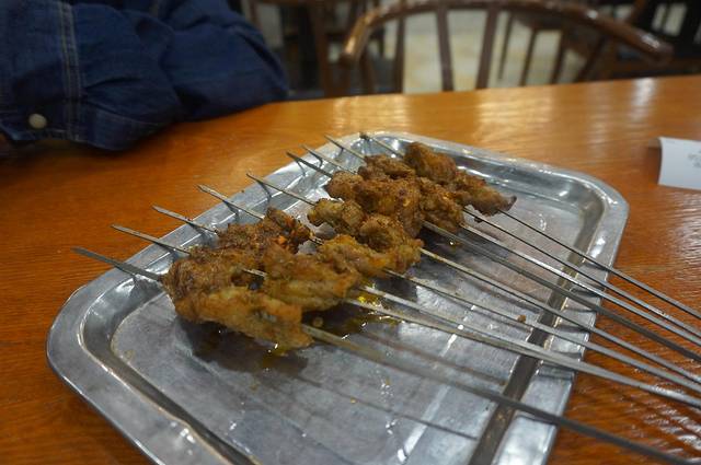 很香也很膻,一串羊肉串挺大大约一个鸡蛋大小。友情提示:人家一手羊肉串是40串,而我是点得最少起点,10串,也就是半手的半手,才来不到两小时西安菜已经让我见识到了份量有多可怕。