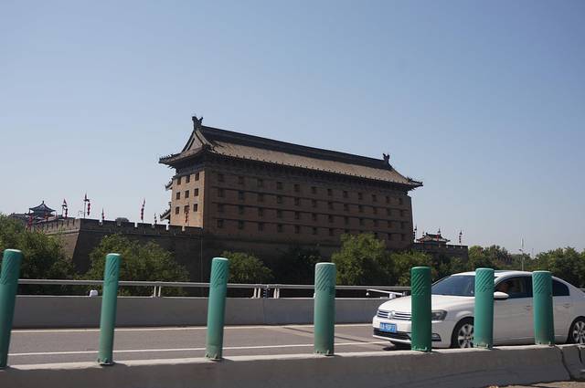送机路上路过西安古城墙,这里应该是含光门得样子,火车站就在城墙旁边,路上还在播放那首歌“西安人的城墙下是西安人的火车”