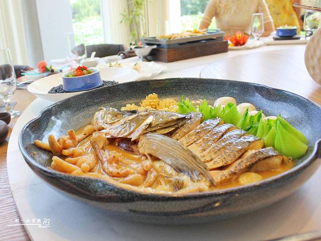 特色白浇鱼头,388元,选用千岛湖生态有机鱼头,用料讲究,里头配有鸡爪、鱼丸、鲍鱼,分量与价格成正比。