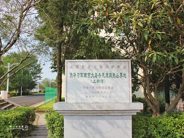 不远处,有一栋办公大楼,大楼下立着一个石碑,石碑上注明“侵华日军南京大屠杀死难同胞丛葬地(上新河)”,此乃全国重点文物保护单位。看来,这里在抗日战争时期也留下不可磨灭的历史印记。