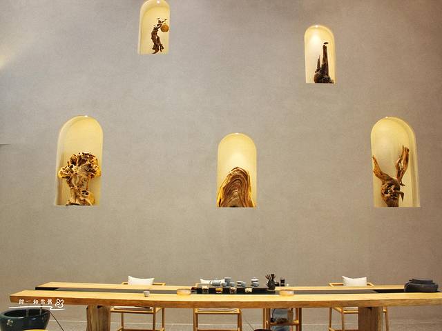 位于江堤路上的三品堂,面朝一池富饶的荷花塘。入内后,迎面一棵大树形状的艺术装置,与之呼应,墙一侧树雕布置,下设茶道。自然柔和的灯光,精致又舒适,凸显着尊贵二字。