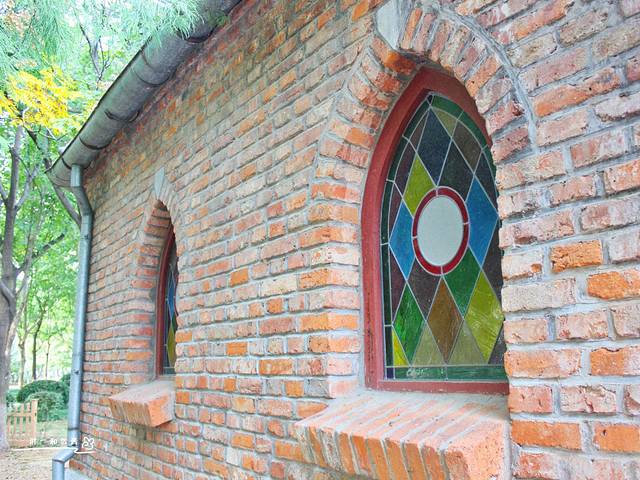 因为向日葵的加持,风车旁的景致尚且不错。而我呢,比较喜欢风车对面的教堂,瓦片是荷兰老式的,玻璃是艺术彩色的,欧式风范彰显无疑,可惜的是,教堂看似失修已久,有一面窗户已裸露在外。
