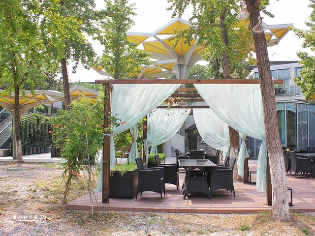 不过,最让本博主雪酱心水的,是各家露天休息区。我在工作日的白天走过,树影婆娑,人迹罕至九月的天气已褪去暑气,坐在遮阳棚下,惬意中吹着秋风。