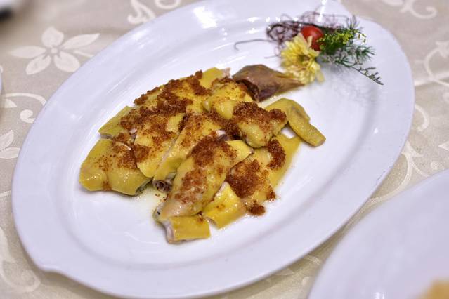 招牌金沙葱油鸡,两个人吃不多就点了半只,味道挺鲜的,地道广东味,怕辣的小伙伴们完全可以点它,不放辣椒的,原汁原味。