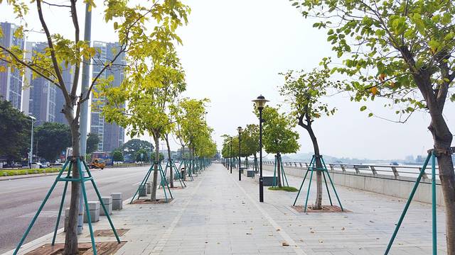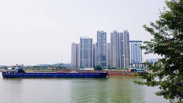 在珍之宝吃宝的了点心,很想消消食,穿过马路走到江边散散步,这里一条长长的江边绿化带,叫做南岸公园。南岸公园真的不大,有风的时候在这里走上一小段,欣赏容桂水道上船来船往。东边可以看到容桂大桥,西边就是渔人码头,一个非常文艺范的好去处。
