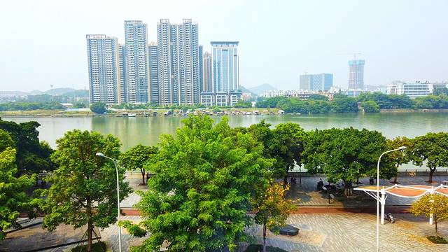 这是我们的早午餐,于是点了一些点心,作为一个本地人,Echo小姐姐建议了几个经典点心,食物很美味,久别重逢我们也聊的很多,这里的环境挺好的,大大的窗户外面,就是美丽的容桂水道的江景,频繁的有船只通行,江边的马路绿树茵茵,江对面也有高高的大厦群。看着这船来船往,桌上有美味的食物,室外纵使有34度,我们坐在酒楼里边,冷气开放。