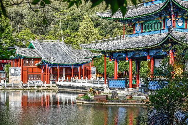 如诗如画的黑龙潭上有很多纳西族建筑,这些建筑为黑龙潭的人文气息增添不少色彩,如果没有这些建筑的话,那么黑龙潭也会逊色很多。