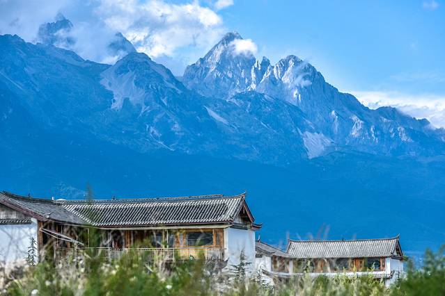 玉龙雪山是丽江百姓心目中的一座神山,常年不融化的冰川充满着神秘的信仰力量!沿雪山脚下而建的纳西族建筑物颇具韵味!在天气晴朗的时能将雪龙雪山全貌尽收眼中。纳西建筑与雪山景色完相融的如此完美!山野君不知该用哪种词汇对此景进行描述了。震撼、漂亮这些词语显得太过于单调了吧?