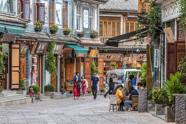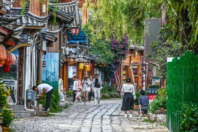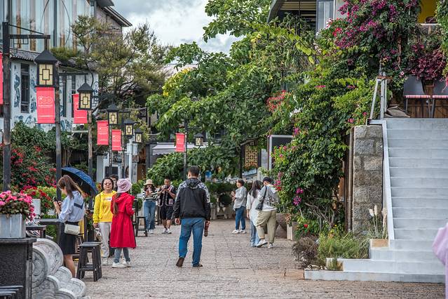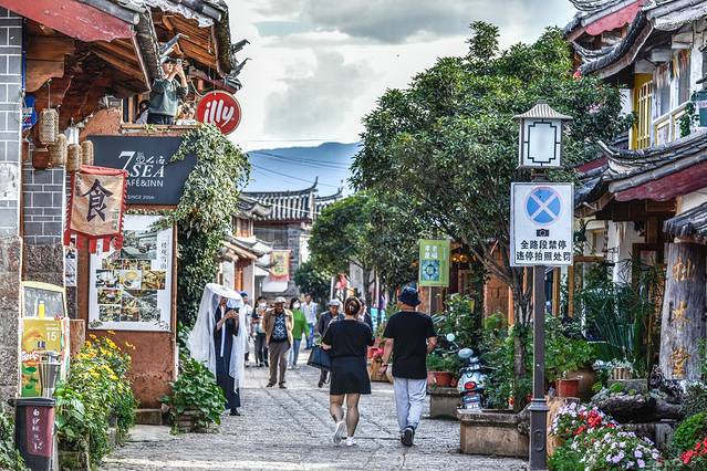 在束河集镇中心可以看到一些时尚无比的客栈、餐厅以及商业店铺,以及着装很潮流的游客们,为这座古朴生活气息的束河增添不少的时尚元素。