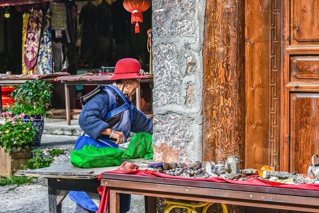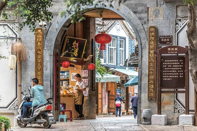 无浓厚商业气息的地方并不是说完全没有商业场所,毕竟有人流的地方肯定有商业活动,白沙古镇也有一些商业街。不过,白沙古镇的商业街基本上是简单的杂货店铺、咖啡厅以及小客栈。相比较热闹非凡的大研古镇来说,它的商业气息非常清淡,土著居民生活的韵味更加明显一些。