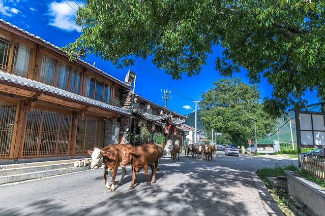 如果说大研古镇是商业化较为明显的话,那白沙古镇目前绝对算是最清幽的村落。在不经意间就能看到马群、牛群从全村穿行而过,这才是最原生态的古镇呢,这也太有生活气息了吧?