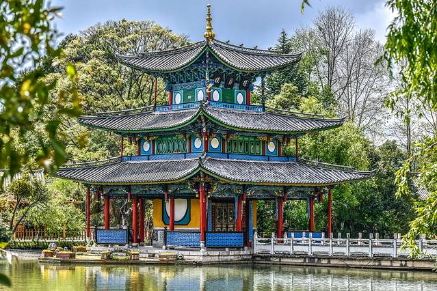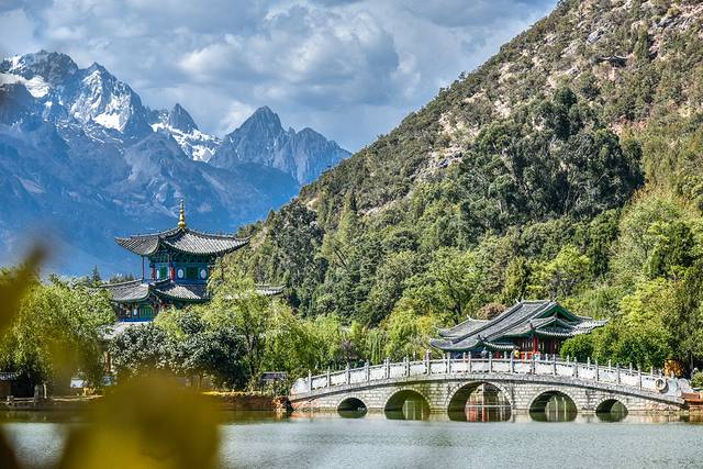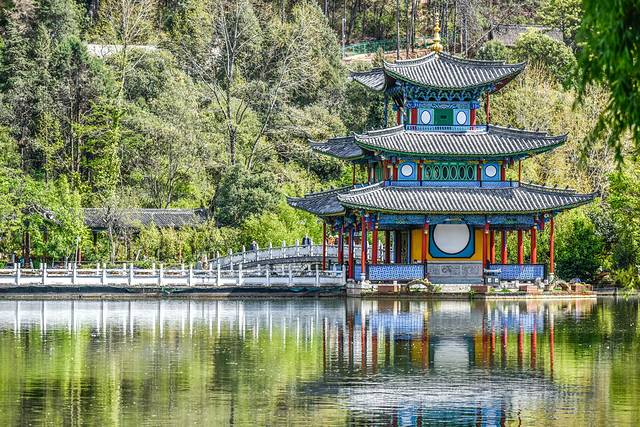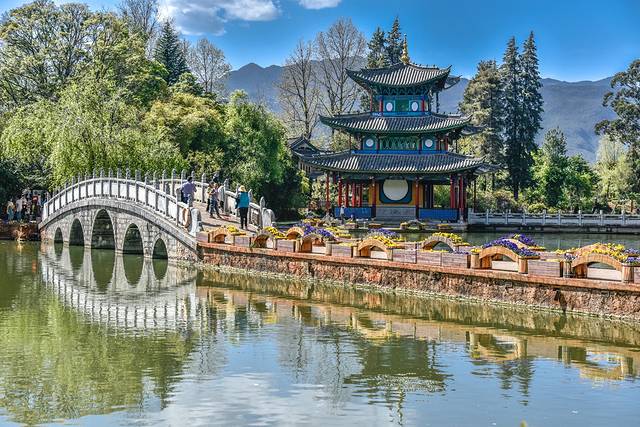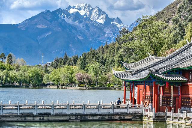 丽江古城是再也熟悉不过的地方了,在古城北面靠近玉龙雪山方向的一条河流附近有一处原生态风光,它就是黑龙潭风景区。本应该是鲜为人知的小众化景点,在互联网的作用下,有不少人都知道这个风景区了。黑龙潭上的建筑物不多,其中最重要的莫过石拱桥,连接石拱桥两端各有一座鼓楼,而在水中央的那座楼就是今天要跟大家分享的得月楼了。丽江得月楼为大研古城自然风光起到画龙点睛之笔,现在就跟随山野君一起来看看吧!