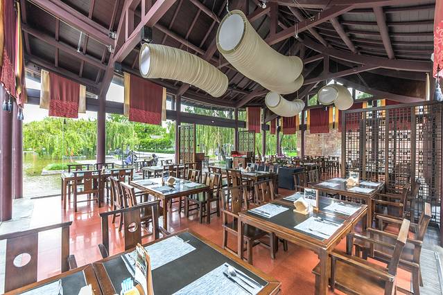 听花堂的室内环境比较古韵带有高端典雅的气息,这种环境相当有讲究,无论是装修格调还是风水格局,都是相当有考究的。大堂总共有三大部分组合而成,分别是进门口处的前台办理处、中庭茶闲聊的下午茶吧区以及早餐厅区域。