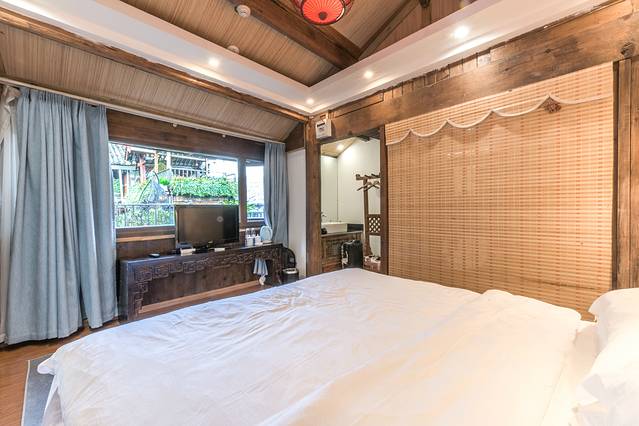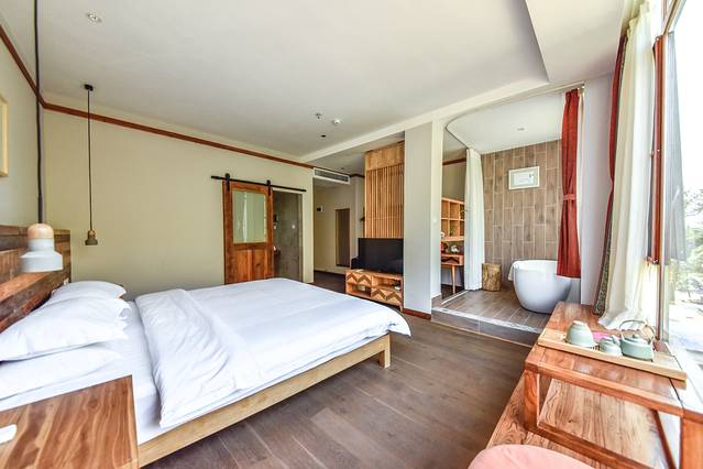 卧室内的原木家具营造出高端典雅的整体环境,高端大气的硬件设施与绝佳的观景视野的河畔小住,不愧为当地顶级客栈,下榻于此如同过着神仙般的生活。你们喜欢不啦?