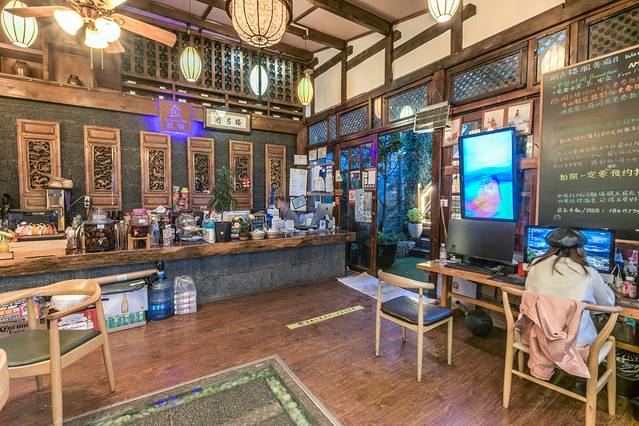 大厅的每个区域用一度不完全封闭的木墙隔开,每个片区相对独立却又是整体感十足,傍晚大堂环境有着极为古朴典雅、温馨舒适既视感,顿然间心情舒畅不少。这些可能就是听花堂能成为丽江最网红民宿的一个重要原因吧?