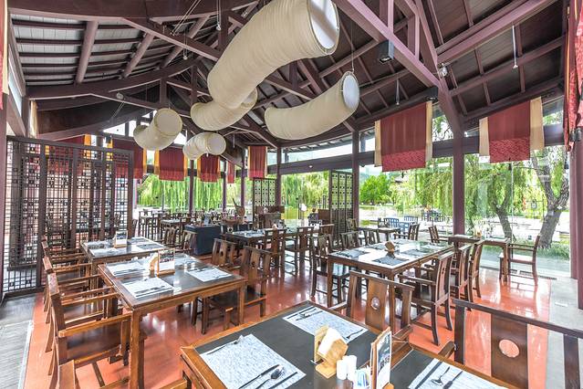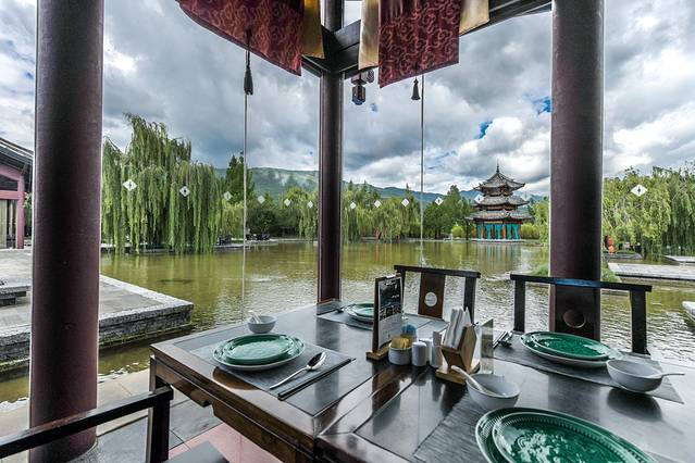 靠着室外一面都是绿水青山与雪山倒映的美景,身处这般环境的餐厅就餐,就是一种奢华的享受。