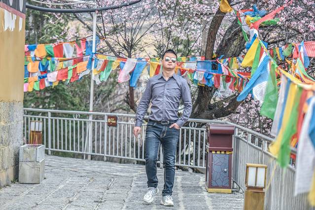 来迪庆龟山公园最不能缺少的就是相机了,带上长焦镜头能拍到很多美如画的风景。4月中旬的龟山公园是很好的赏春之地,在桃花下漫步是多么温馨而浪漫的享受呀!山野君忍不住找人帮我拍了不少合影照,我想把自己写进香格里拉的风光里。