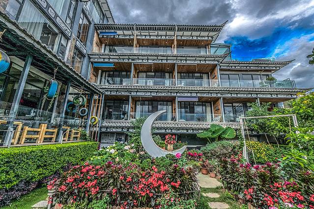 山野君废话了这么多,估计不少人都迫不及待的想要知道这是哪一家客栈了吧?它就是大理洱海的良宿网红旅拍客栈,它距离洱海近10米之遥。外观上很有大理本土建筑特色,营造出很接地气的建筑气息。