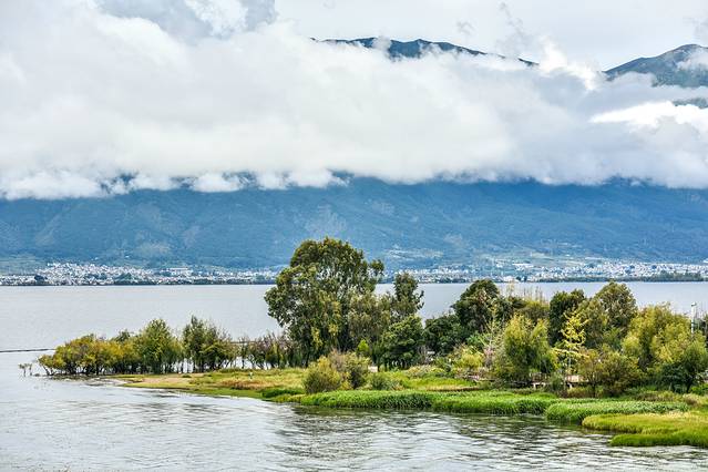 山野君喜欢洱海,慢慢的驱车过程中,突然发现洱海上一处绝美的风光,虽然不知道是叫什么名字,但风光美得让人停下车慢慢地欣赏。