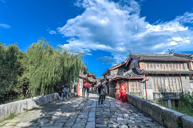 与大研古镇一样,束河处处都有古桥,每一座石桥都有着有趣的历史故事,如有兴趣不妨到此游览一番。山野君在今年9月份到束河古镇游玩,看到了不一样的丽江古城风光,这个感觉真的好好,也不知道该如何去描述。