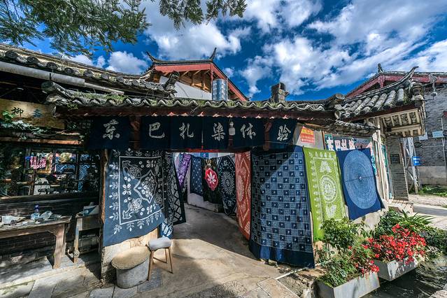 扎染是大理白族最具代表性的手工艺,成为非物质文化遗产。丽江与大理山水相连、地缘相近、人缘相亲,所以扎染文化也影响到丽江,从大理移民到丽江的白族人把这些珍稀无比的手工艺带到了丽江,成为丽江不可多得的文化遗产体验项目。丽江的扎染体验中心大部分都在白沙古镇,倘若想要体验那就到白沙古镇。