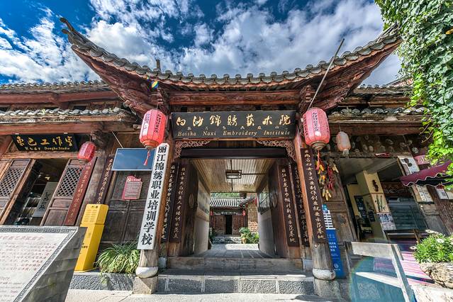 丽江与大理地缘相近、人缘相亲,在很多文化习俗方面非常接近,诸如扎染手工艺以及锦绣技术方面,从大理移民到丽江生活的白族百姓们把祖辈相传的手工艺带到丽江,成为丽江精彩的文化遗产。丽江的扎染手工业者们大部分都在白沙,可以体验正宗的扎染以及锦绣工艺,在白沙古镇除了扎染体验馆之外还有难得的锦绣艺术院。