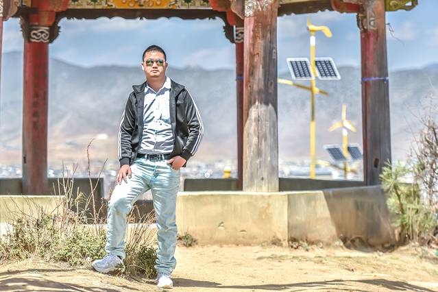 在即将抵达百鸡寺前有一座海拔很高的观景亭了,在亭子里基本可以鸟瞰整个独克宗古城了,如果想要更开阔的视野那得继续爬到百鸡寺。为了纪念,山野君就在这里打卡并休息了一下,附近比较不错的景点也会拍一些。