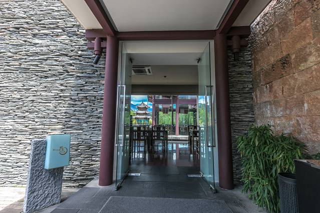 丽江明月餐厅地处丽江悦榕庄酒店进门后的右手方向,它没有五星餐厅的外景,却是丽江束河最佳观景的餐厅,餐厅门口看起来并没有花里胡哨的直觉,这种设计有着沉稳大气的既视感。