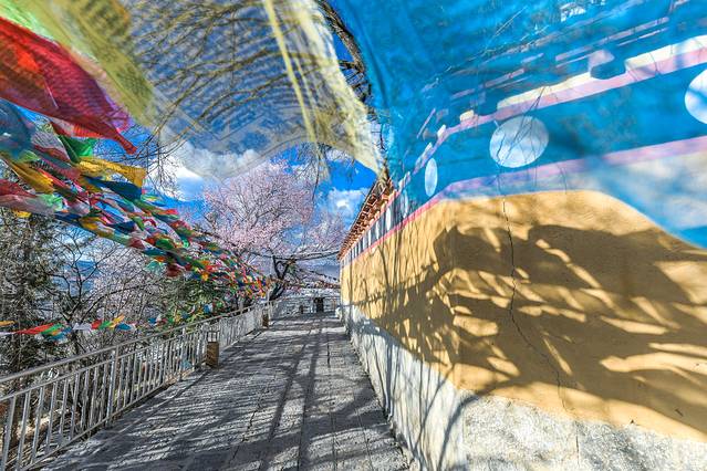山野君虽然是土生土长的江南人,桃花也看得很多了,但是像香格里拉这般桃花风光还是第一次见。雪山、桃花与藏地寺院三种元素相结合的春季风光太美了。围绕大佛寺一圈欣赏雪山与桃花相映的龟山公园是玩转香格里拉的好方法,山野君非常喜欢这般风光。