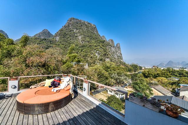 河畔小住民宿最大的亮点就是高层观景台,在顶楼可以将漓江最美自然风光尽收眼底,三朋四友到此地一边吃下午茶一边享受画卷般的山水风光,这种体验不知道有多爽,看照片就让人心动不已。