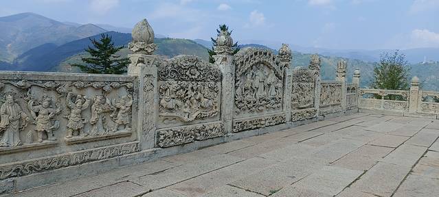 我觉得自己遇到了文殊菩萨:一位自称来南山寺不下200次的光头游客,向我介绍南山寺精美绝伦的石雕,这里几乎是无石不雕,最为著名的就是望峰台的石雕护栏,每一幅就是一个故事。