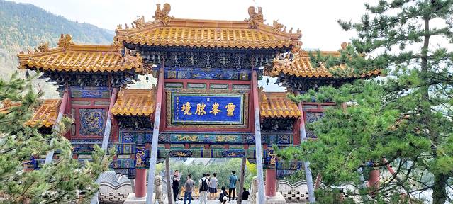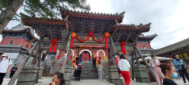 吃完中饭到第七大寺院金阁寺:五台山最高佛像千手观音所在地(开花佛)汽车穿过拱门直接可以开到寺门前,用高德地图可以导航导到。