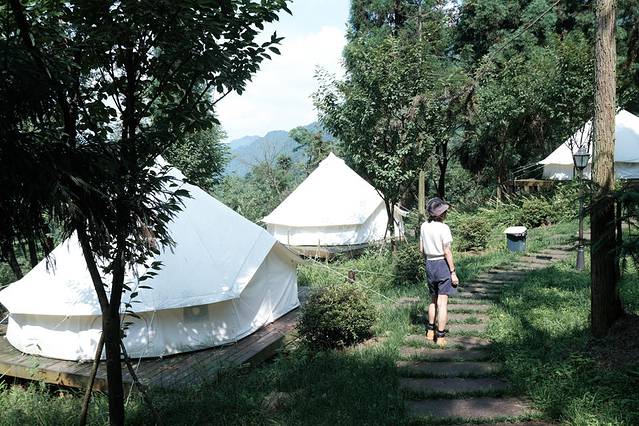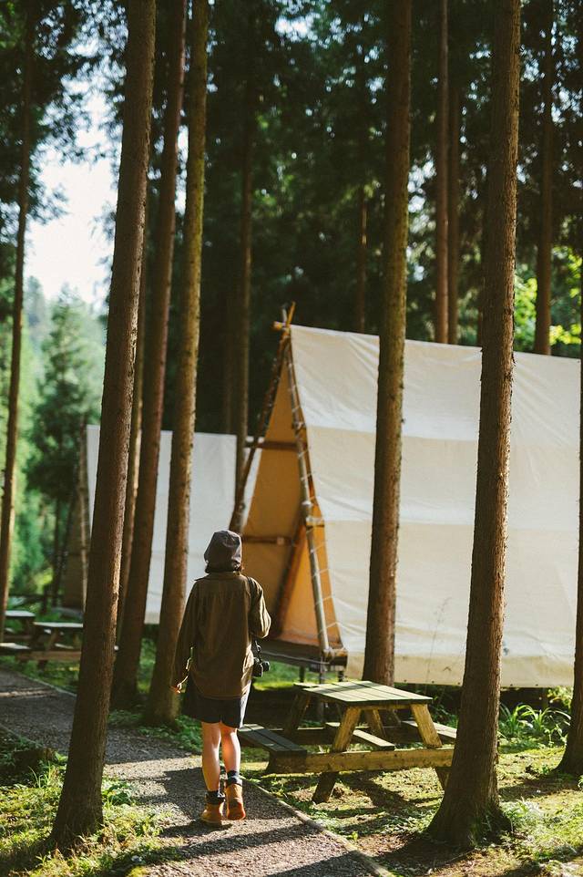 这次露营是在成都周边2h左右的地方,它有三个营地,有主打漂流的、有主打帐篷民宿的、有主打森林小屋的,我很喜欢那个森林氛围感的露营地。