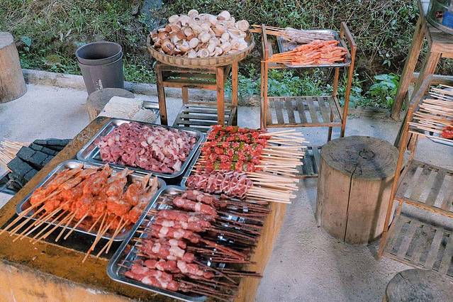 这个是在赵公山露营那次,出发前特地去市场买了很多肉,还有竹签串好的仪式感。感觉分分钟都可以出摊了~