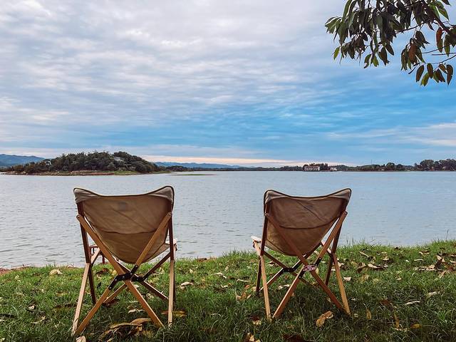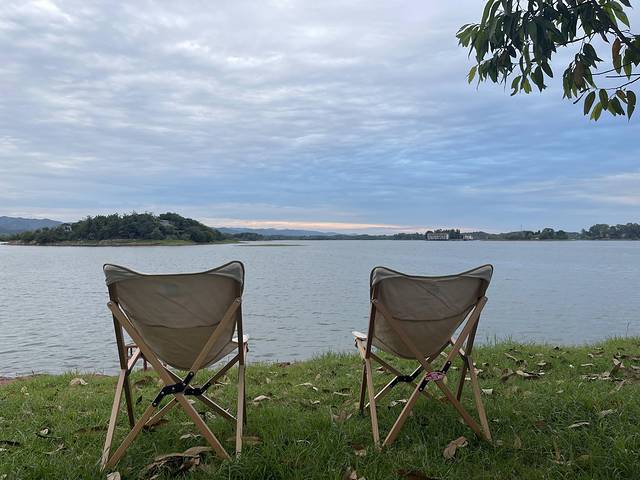 成都没有海,那就去一个湖边假装海景露营吧~